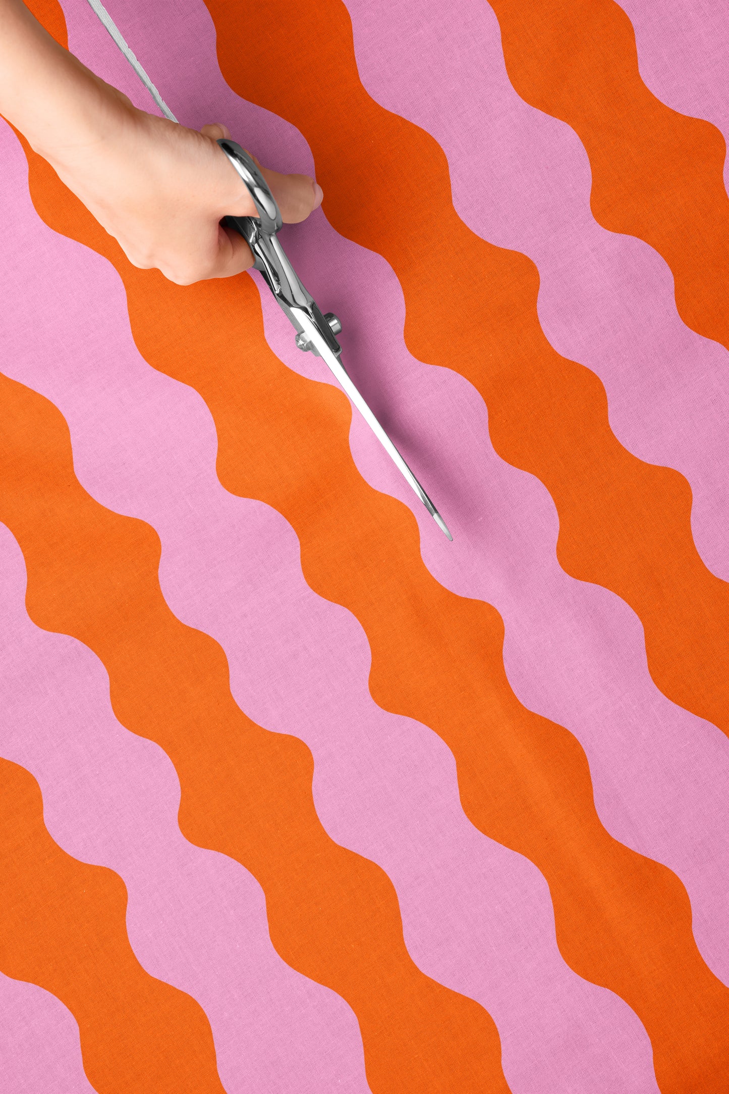 The 'Wiggle With Me' fabric features a unique wavy pattern in two beautiful colours: vibrant orange and playful pink. The fabric's texture adds depth and visual interest to any project, making it perfect for creating eye-catching apparel, home décor, and more.